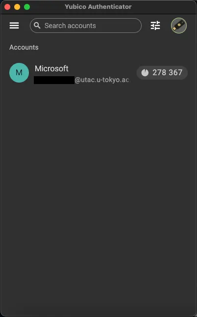 3. The process is complete if you see that your account has been added in the Yubico Authenticator application.