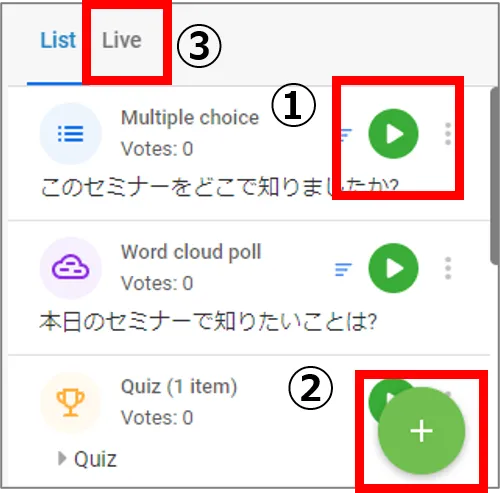 • 投票結果は③Liveタブで確認できます.